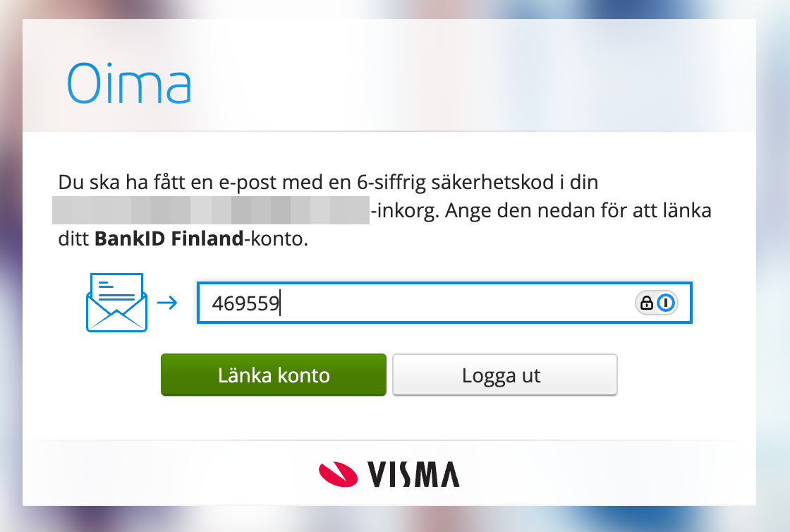 Denna operation är helt säker. Dina bankkoder kommer inte att kopplas till ditt Oima-konto som en följd av detta. BankID-texten hänvisar endast till att du har gjort stark autentisering med dina bankkoder.