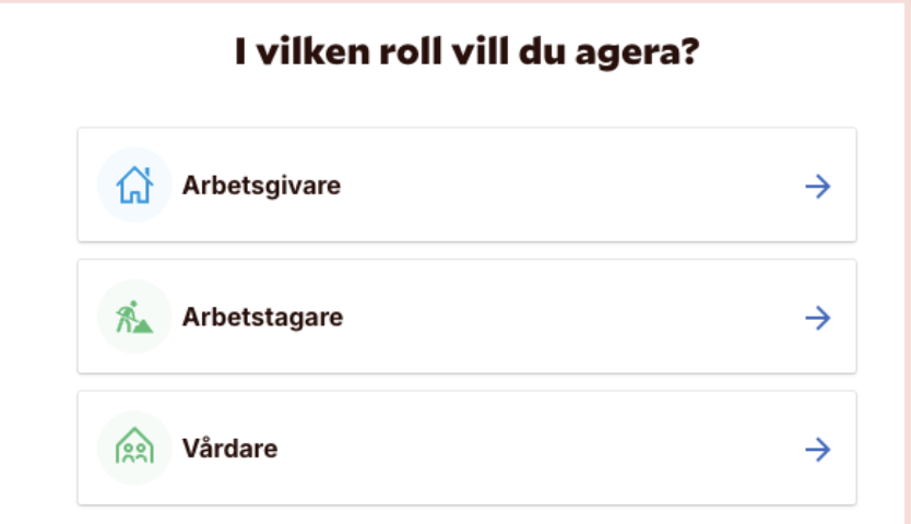 Grattis, du har nu loggat in framgångsrikt i Oima-tjänsten. Välj nästa din roll i Oima-tjänsten.
